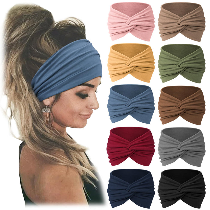 • Jesries headband set contains 10 individually wrapped headbands containing 10 different color: Beige, pink, lake blue, khaki, burgundy, light gray, gray, army green, navy, black. The wide range of colors of women's wide hairbands can match well with different styles of clothing and occasions: your everyday wear, sports style dressing, or for practical full-back hairstyles, etc.