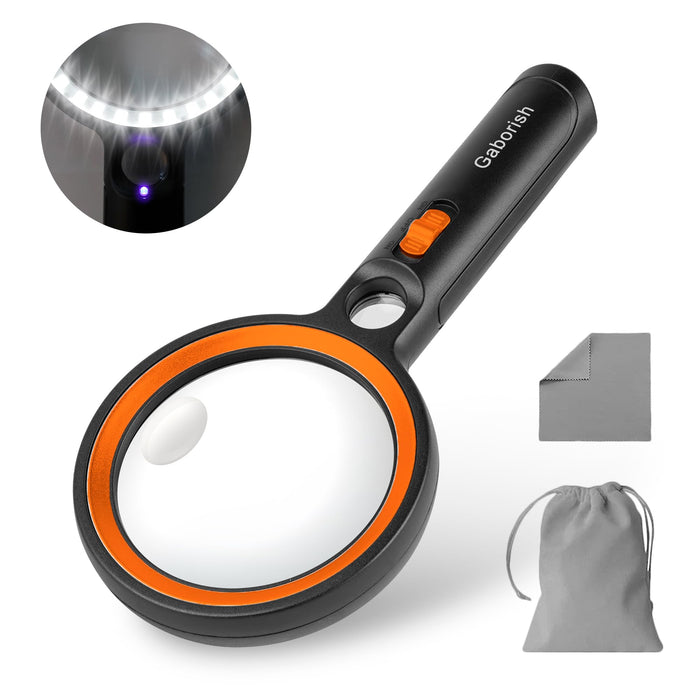 Magnifying Glass with 30 LED Lights, 10X 20X 45X Handheld Illuminated Lighted Magnifier with 1UV Light for Seniors Reading, Inspection, Coins, Jewelry, Exploring Light Magnifying Glass (Orange)
