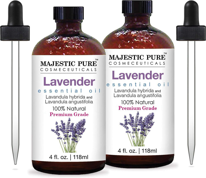 MAJESTIC PURE Lavender Essential Oil | 100% Pure and Natural | Premium Grade Essential Oils for Hair Care, Home Diffusers, Skin, Aromatherapy, Massage and Humidifiers | 4 Fl Oz (Pack of 2)