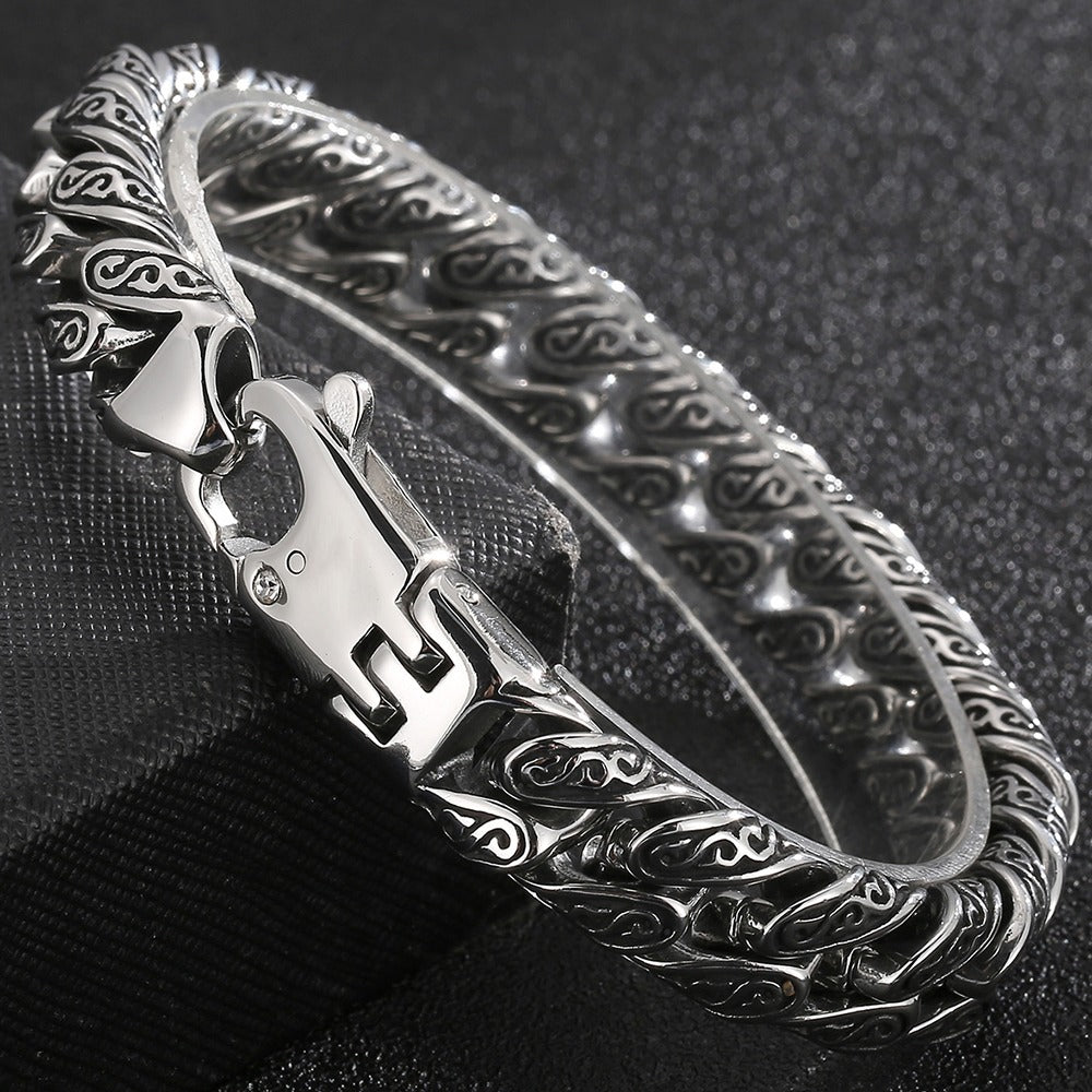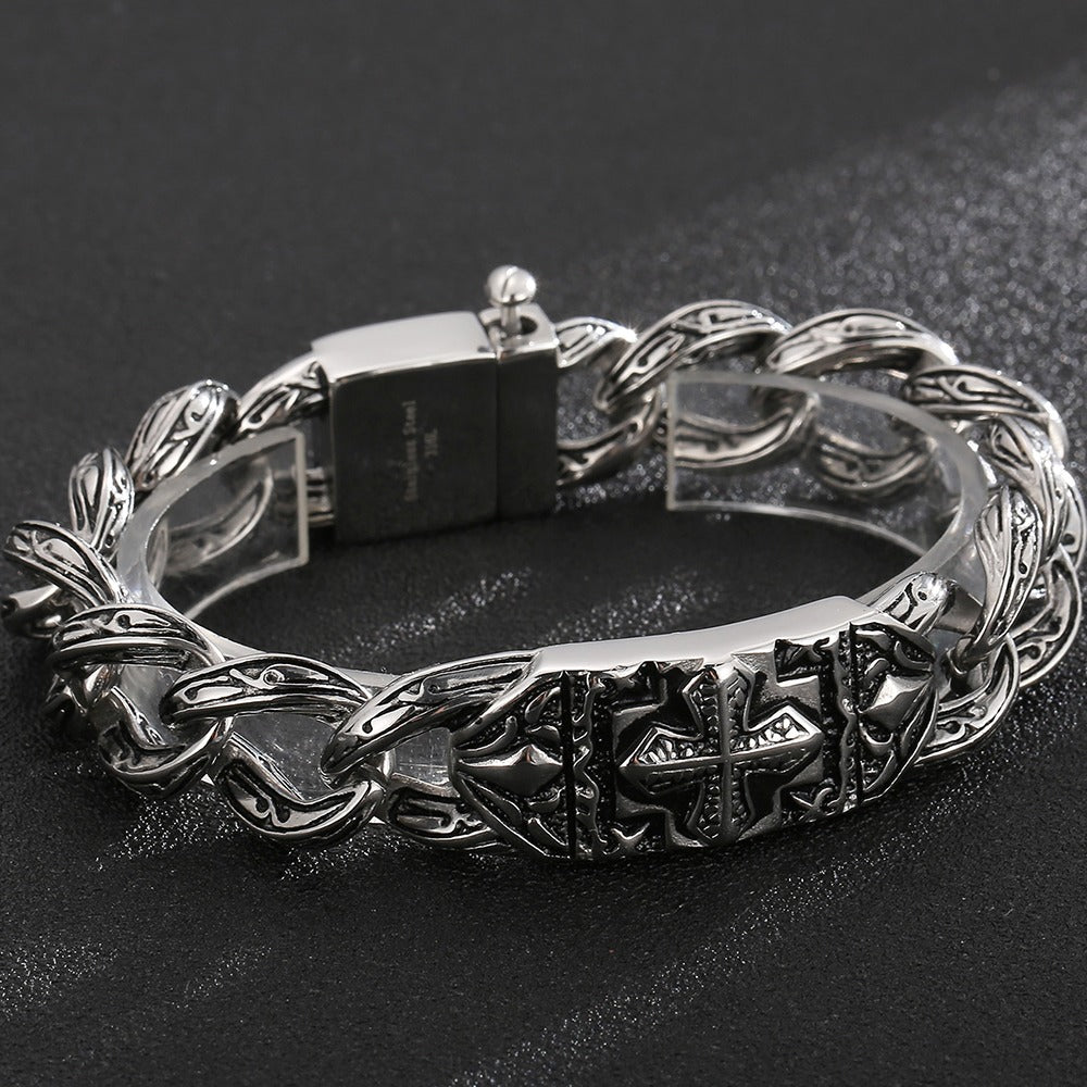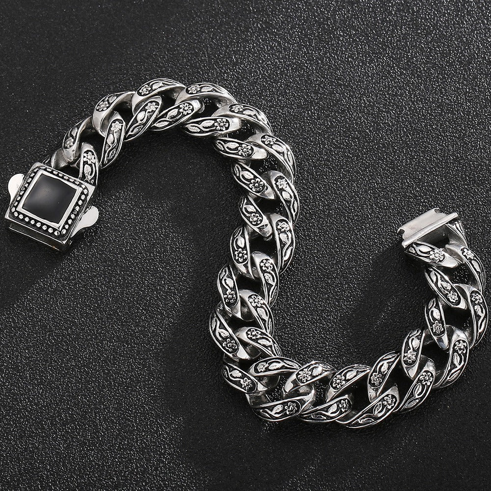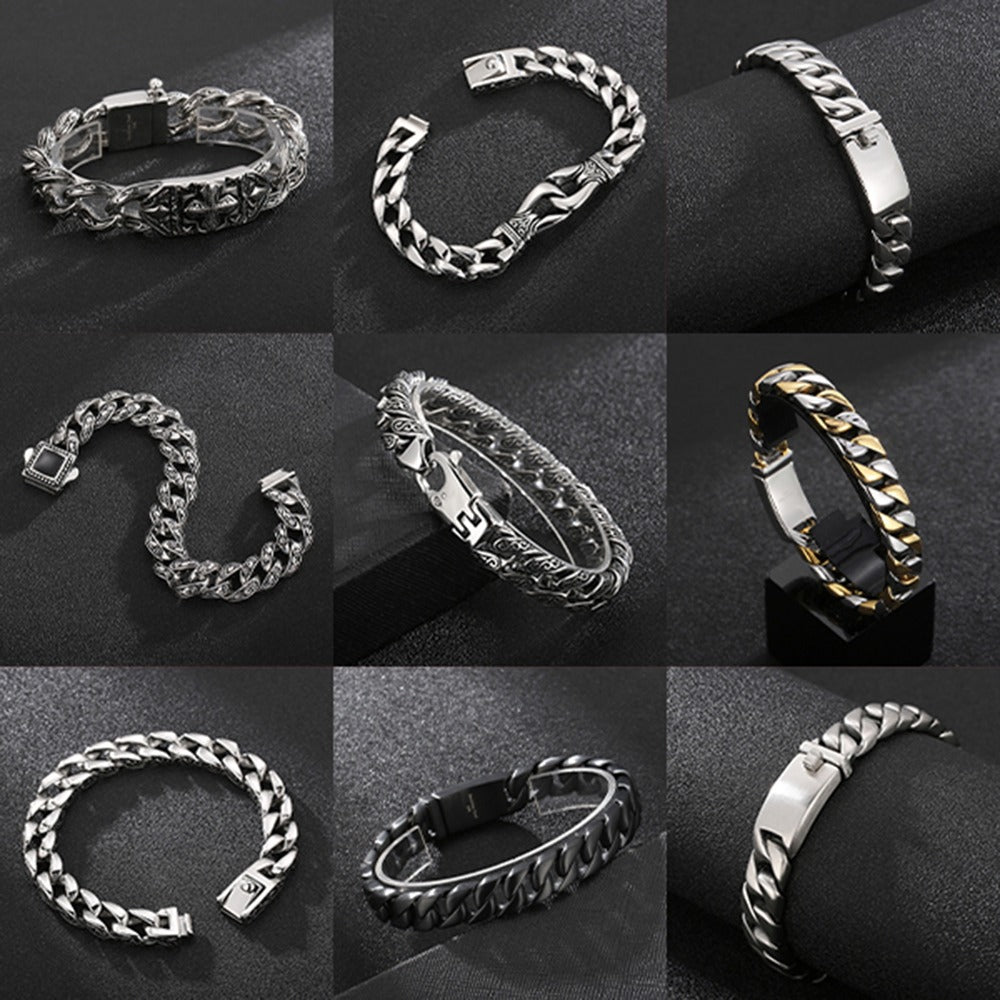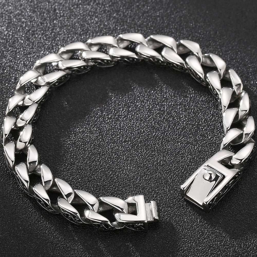 Man Bracelet Homme 12MM Wide Stainless Steel Curb Chain Charm Bracelets Hand Bands for Men Vintage Mens Jewellery Accessories
