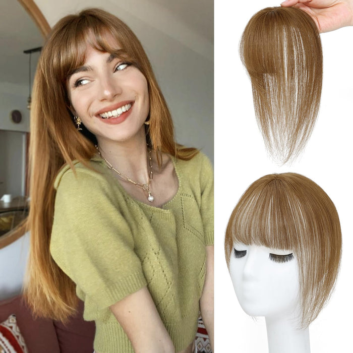 NAYOO Bangs Hair Clip in Bangs Human Hair 360° Cover Wipsy Bangs Hair for Women, 2 Secure Clips in Full Fringe Fake Bangs Hair Toppers for Women Girls Daily Wear (Wispy Bangs, Medium Brown)