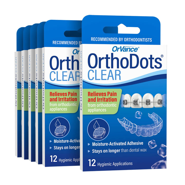 OrthoDots CLEAR – Moisture Activated Braces Wax Alternative for Pain Caused by Braces, Clear Aligner Trays, and Other Orthodontic Appliances. OrthoDots Stick Better and Stay on Longer than Dental Wax.