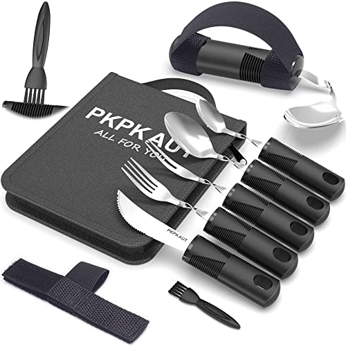 PKPKAUT Adaptive Utensils for Parkinsons Patients Elderly, Weighted Utensils for Hand Tremors, Parkinsons Eating Utensils for Disabled People, Weighted Silverware for Hand Tremors Arthritic Hands