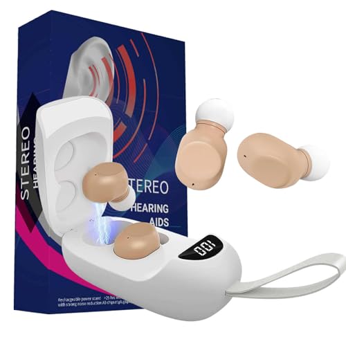 Rechargeable Hearing Aids, Hearing Aids for Seniors Adults In Ear Hearing Amplifier with Noise Cancelling Magnetic Contact Charging Case with LED Power Display Mini Hearing Aids