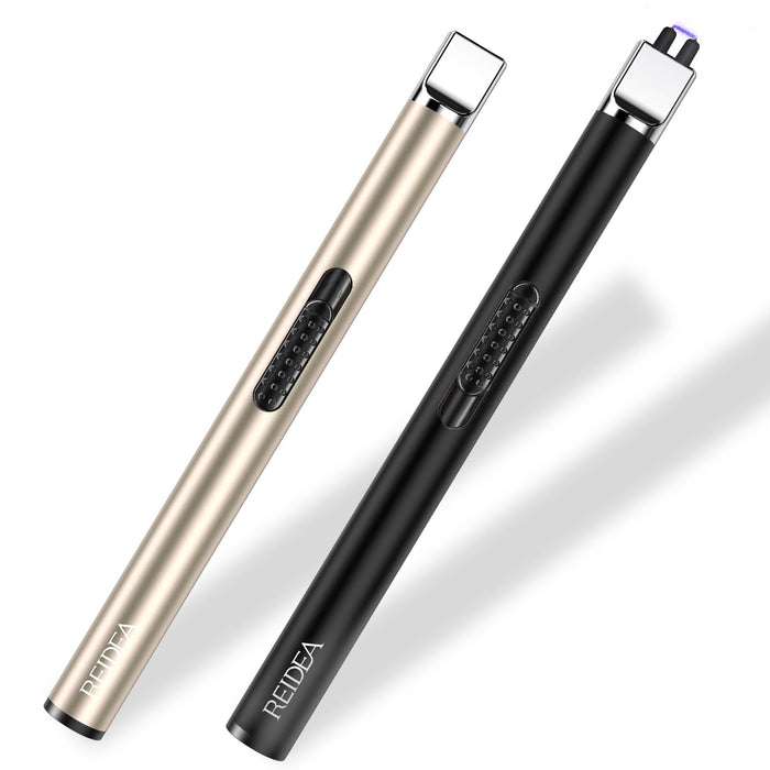 REIDEA Lighter S4 Electric Candle Lighter USB Rechargeable with Safety Switch, Portable Fast Heat Windproof Plasma Lighters, Perfect for Home Cooking BBQ Camping Fireworks (Champagne Gold + Black)