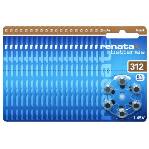 Renata Size 312 Zinc Air 1.45V Hearing Aid Battery - Designed in Switzerland (120 Batteries)