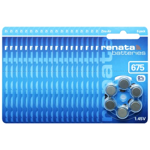 Renata Size 675 Zinc Air 1.45V Hearing Aid Battery - Designed in Switzerland (120 Batteries)