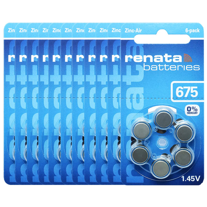 Renata Size 675 Zinc Air 1.45V Hearing Aid Battery - Designed in Switzerland (60 Batteries)