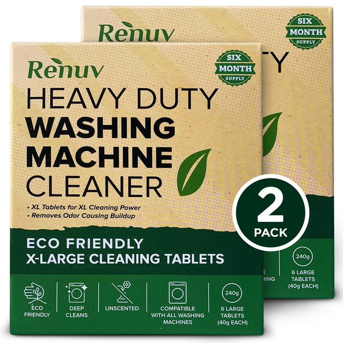 Renuv Heavy Duty Washing Machine Cleaner and Descaler - Deep Cleaning Tablets For Front Load or Top Load Washer (12 Pack 2 Boxes)