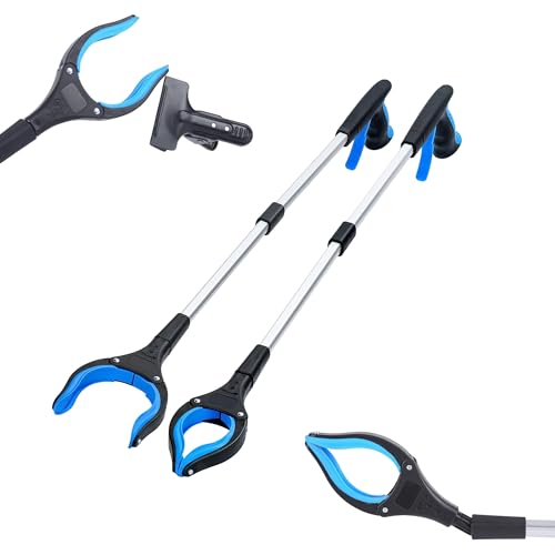 Ruizzrlhb Grabber Reacher Tool 32 Inch 2-Pack with Strong Grip Magnetic,Trash Picker Grabber 360°Rotating Anti-Slip Jaw for Elderly,Trash Claw Grabber Mobility Aid Reaching Assist Tool,Blue