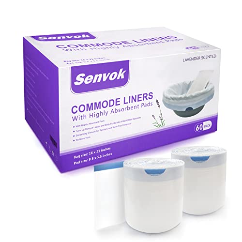 Senvok Commode Liners with Highly Absorbent Pads - [Lemon Scent Pack of 60] - Medical Grade - Universal Fit - Leak-Proof - Bedside Commode Liners and Pads Disposable, Toilet Liners Disposable Adult