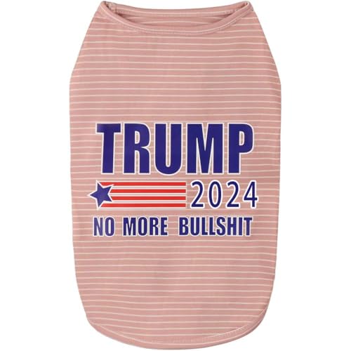 Sleeveless Dog T-Shirts for Small Medium Dogs and Cats Trump 2024 Printed Striped Puppy Tank Top Summer Cotton Pet Clothes, White Striped, Medium