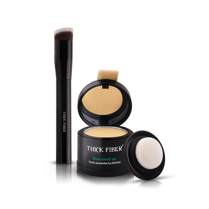 THICK FIBER Root Touch- Up powder to conceal thin Hairline. Effortlessly address thinning hair and gray roots with our expertly crafted formula. Seamlessly cover problem areas, from hairline to roots, THICK FIBER comes with a brush for easy, quick application, making bad hair days a thing of the past. Whether it's your hairline or roots, THICK FIBER Root Touch up coveres, flawlessly concealing and revealing a more vibrant look. No more worrying about those sneaky grays or sparse spots – just a natural, radiant finish. Transform your routine with this easy-to-use root touch-up powder, designed to provide instant coverage and a fuller, more vibrant hairline