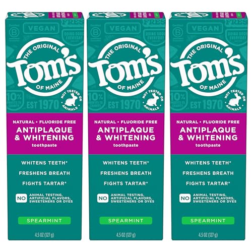 Tom's of Maine Fluoride-Free Antiplaque & Whitening Natural Toothpaste, Spearmint, 4.5 oz. 3-Pack