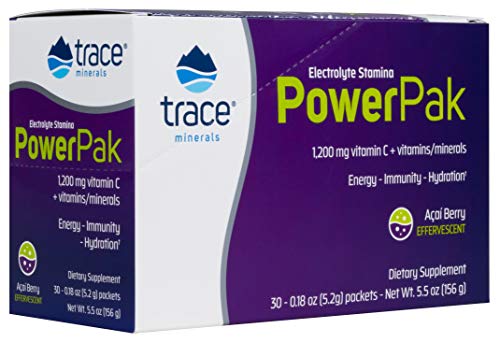 Details: Electrolyte Stamina Power Pak by Trace Minerals 32 Packet If you have ever felt drained or sluggish after a day in the hot sun or a tough workout your body may be telling you that it needs more electrolytes. Electrolytes are needed to maintain proper fluid balance and to optimize your energy levels so you can function at your best. Electrolyte Stamina Power Pak is an easy-to-fix high performance energy drink with no caffeine artificial stimulants or artificial ingredients. Our formula contains 1200 mg of Vitamin C an essential anti-oxidant for people who are active and on the go. It also contains all major electrolytes (potassium magnesium chloride and sodium) plus over 72 verified ionic minerals and trace minerals from ConcenTrace which accelerates assimilation and absorption of vitamins and nutrients. These electrolytes conduct electrical impulses in the body and also help maintain your bodys acid base balance for more energy and vitality.