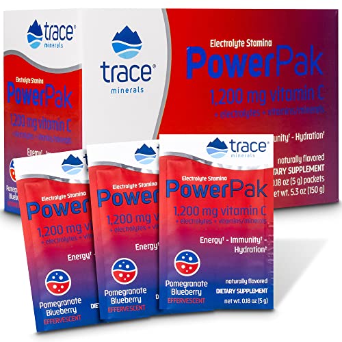 Trace Minerals | Power Pak Electrolyte Powder Packets | 1200 mg Vitamin C, Zinc, Magnesium | Boost Hydration, Immunity, Energy, Muscle Stamina | Pomegranate Blueberry | 30 Packets
