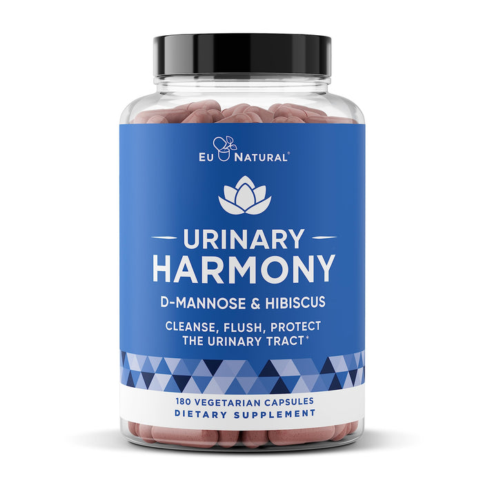 Urinary Harmony D-Mannose Supplement – Urinary Tract Health for Women – Potent Clinical-Strength Formula with D-Mannose and Hibiscus Cleanses and Flushes the Urinary System – 180 Fast-Acting Capsules